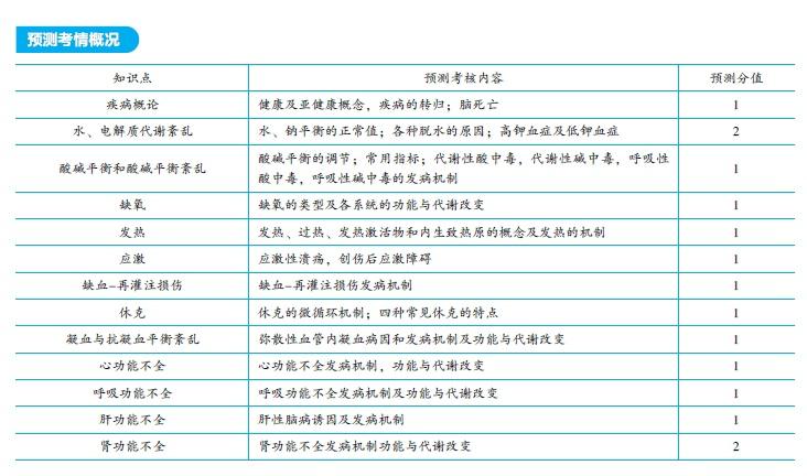 病理生理学作为执业医师新增的基础科目,分值不会太多。主要考察水、电解质酸碱平衡代谢紊乱、发热、应激、休克及多器官衰竭。与临床疾病相关联的知识点。建议考生: