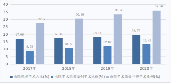 图2 2017-2020年二级公立医院出院患者手术开展情况
