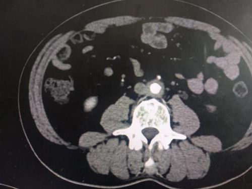 腹膜后纤维化是一种临床少见疾病,指的是以腹膜后异常增生的炎性纤维组织包块包绕腹主动脉和髂动脉及其相邻结构如下腔静脉、输尿管等为特征。可独立存在或是系统性免疫性疾病的表现之一。有特发性及继发性两大类,主要为前者,约占2/3,后者较少见,约占1/3,继发于肿瘤、感染、放疗、药物及手术等。输尿管为最常受累的器官,可能是由于它特殊的解剖特点,位于腹膜后,腰大肌前方,腹主动脉旁、跨过髂血管,同时其对压迫的抵抗力差有关。临床上腹膜后纤维化导致尿路梗阻肾积水临床表现缺乏特异性,可为腰腹痛、肾积水、少尿、甚至无尿。诊断以影像学检查为主,CT及MRI对腹膜后纤维化的诊断有重要意义,但确诊必须依靠手术及病理检查诊断。本例患者,因腰痛至医院就诊行泌尿系CTU明确病情。