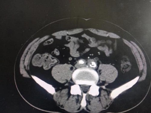 腹膜后纤维化是一种临床少见疾病,指的是以腹膜后异常增生的炎性纤维组织包块包绕腹主动脉和髂动脉及其相邻结构如下腔静脉、输尿管等为特征。可独立存在或是系统性免疫性疾病的表现之一。有特发性及继发性两大类,主要为前者,约占2/3,后者较少见,约占1/3,继发于肿瘤、感染、放疗、药物及手术等。输尿管为最常受累的器官,可能是由于它特殊的解剖特点,位于腹膜后,腰大肌前方,腹主动脉旁、跨过髂血管,同时其对压迫的抵抗力差有关。临床上腹膜后纤维化导致尿路梗阻肾积水临床表现缺乏特异性,可为腰腹痛、肾积水、少尿、甚至无尿。诊断以影像学检查为主,CT及MRI对腹膜后纤维化的诊断有重要意义,但确诊必须依靠手术及病理检查诊断。本例患者,因腰痛至医院就诊行泌尿系CTU明确病情。