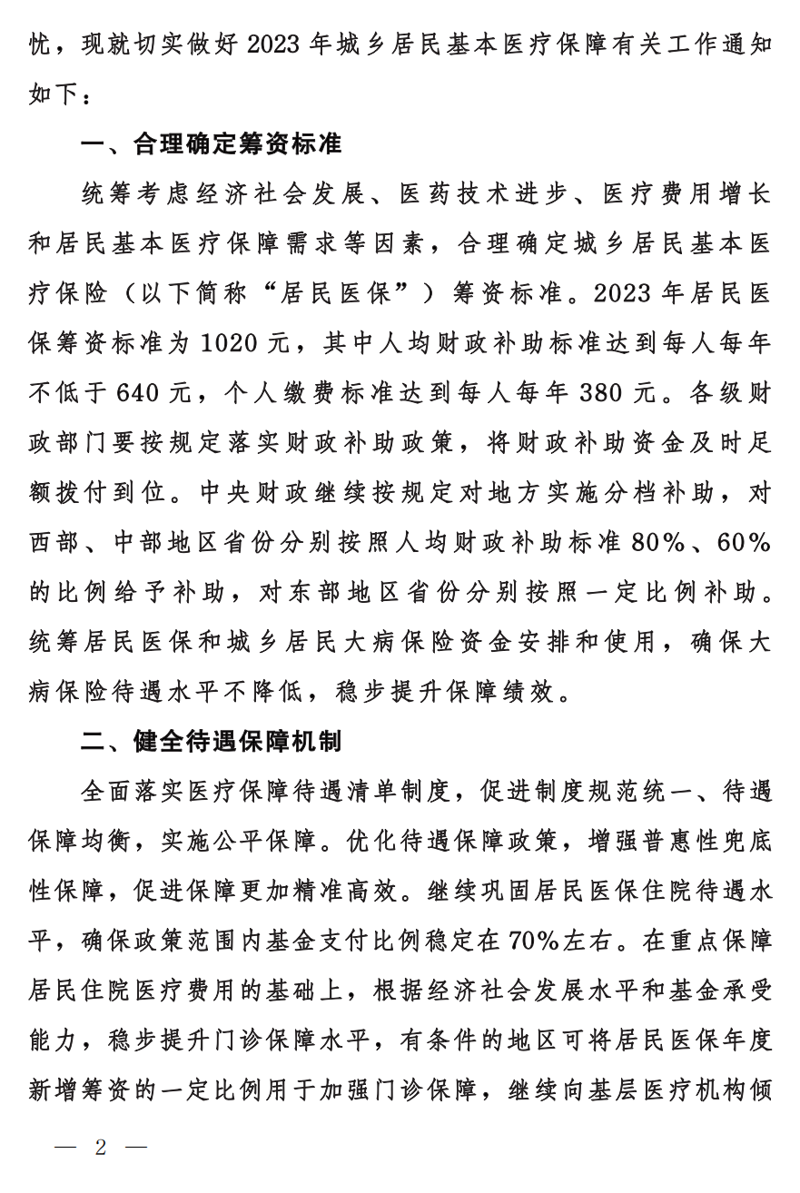 国家医保局、财政部、国家税务总局关于做好2023年城乡居民基本医疗保障工作的通知