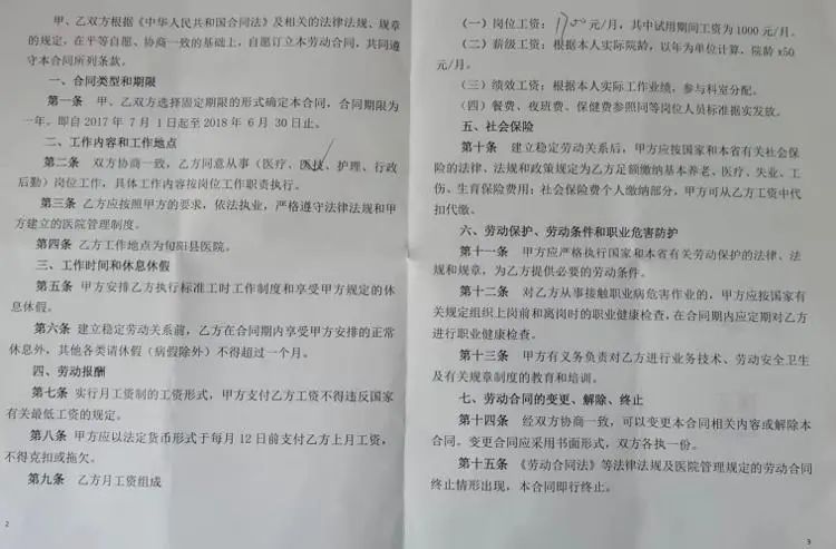 被辞退8人之一的肖女士出示了她在2017年7月1日与医院签订的《劳动合同》,其中并未提到“到龄退休或解聘”一事。