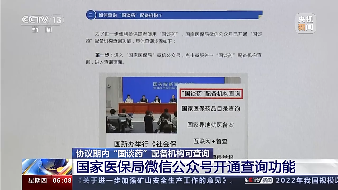协议期内“国谈药”配备机构可通过微信公众号查询